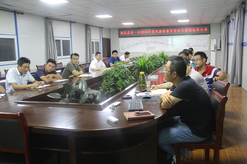 为积极响应公司纪委号召,进一步落实全面从严治党要求,严明党的纪律,在项目部营造崇廉拒腐的良好氛围,海启项目于7月10日召开2016年党风廉政建设宣教月活动动员大会,项目党员、领导干部参加本次动员大会。 会上,项目何治华书记首先明确宣教活动的主题,并对宣教内容进行了详细的安排、部署。何书记强调,项目党员、领导干部要以“两学一做”学习教育为契机,深入学习党章党规、习近平总书记系列重要讲话精神,认真学习《中国共产党廉洁自律准则》和《中国共产党纪律处分条例》,要积极参与到项目组织的各项活动中,切实提高廉洁自律意识。