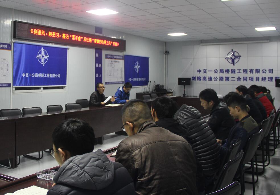 11月29日,剑榕二标召开以《刹歪风、除恶习,整治“漂、浮、虚”从杜绝“奢靡的吃喝之风”开始》为主题的党风廉政建设专题会,会议由项目党支部副书记李元珍主持,项目领导班子、工区主任及各部门负责人参加了本次会议。