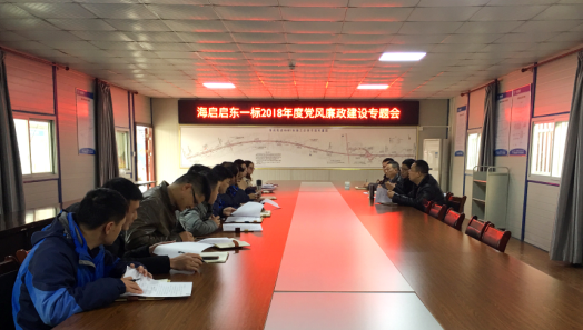 3月22日,海启项目召开2018年度党风廉政建设专题会,项目领导班子及各部门、工区负责人参加会议。