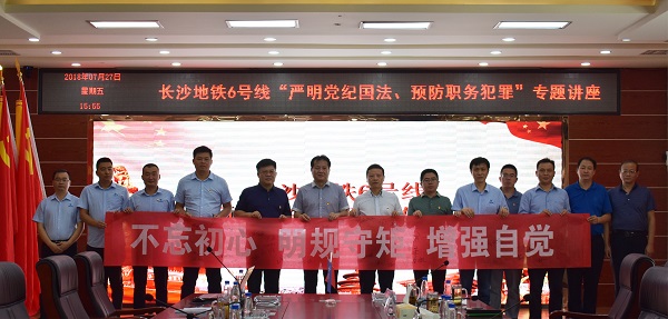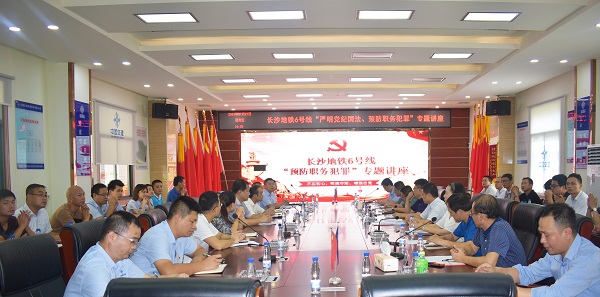 7月28日,长沙地铁项目联合长沙地铁6号线建设公司开展“严明党纪国法,预防职务犯罪”专题讲座 。讲座邀请了长沙市监察委第三纪检监察室副主任李永辉授课。6号线建设公司总经理朱文霞、桥隧公司党委副书记、纪委书记、工会主席郭军峰、公司副总经理汲红旗等人出席此次会议并作重要讲话,建设公司代表及项目总分部关键岗位人员参加此次讲座。