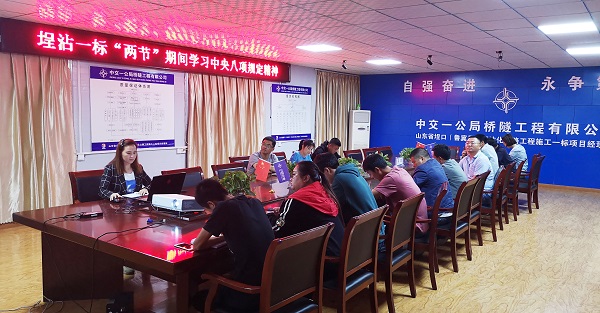 9月26日,埕沾项目召开“两节”期间贯彻落实中央八项规定精神专题学习会,强调中秋、国庆“两节”期间严格落实中央八项规定精神,会议由党支部书记李雪涛主持,传达学习《关于转发《关于2018年中秋节、国庆节期间巩固和拓展落实中央八项规定精神成果的通知》的通知》(桥隧党纪发〔2018〕9号)号文件。