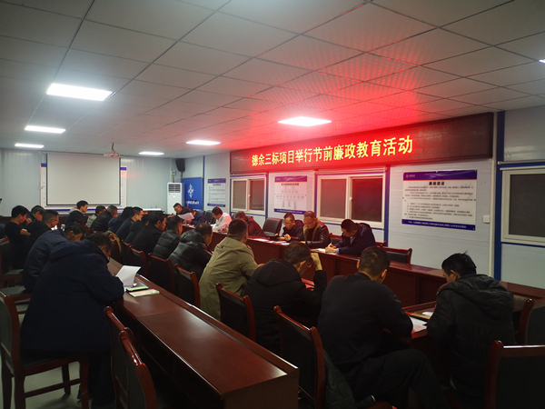 元旦佳节将至,为进一步推动项目党风廉政建设,营造风清气正的节日气氛,2020年12月28日德余三标项目举行节前廉政教育活动,全体职工参加。