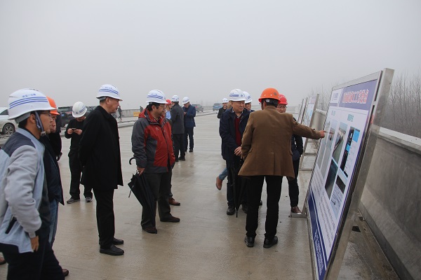 项目副经理张卫华就桥面铺装施工工艺和工艺改进措施进行了详细介绍,并针对“如何防治桥面铺装施工裂缝”与参观人员进行交流,深入探讨了如何从钢筋网片安装、混凝土性能、混凝土浇筑、养生等全过程的管控措施入手,切实有效防治施工质量通病,潘卫育对项目桥面铺装施工予以了高度评价,他表示,项目桥面铺装施工过程中所采用的先进施工工艺从效率、经济及效果等方面来看,都值得学习和推广。