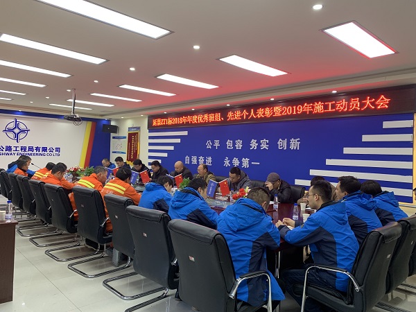 施工动员大会要求项目周密部署2019年施工计划、谋好施工开局,以饱满的热情和高昂的斗志继续奋战,紧绷安全弦,狠抓现场管理,加快工程进度。