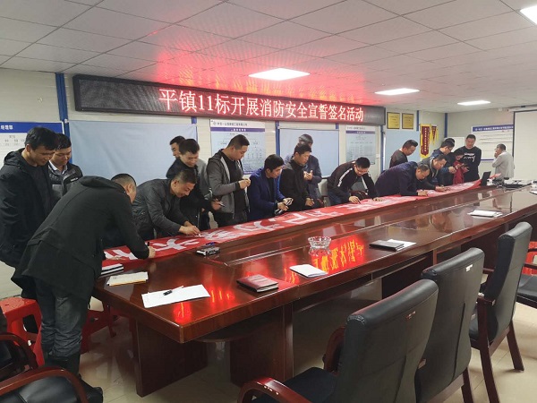 为全面提升职工消防安全意识,有效消除火灾隐患和杜绝火灾事故发生, 4月9日上午,平镇11标项目部全体职工开展以“消防安全是一种责任,为己为家为他人”为主题的宣誓签名活动。