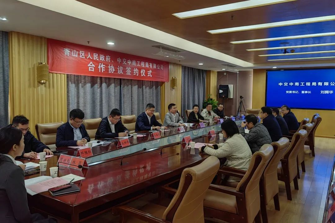 11月26日,中交中南局与武汉市青山区政府举行战略合作框架协议签约仪式。中南局党委书记、董事长刘拥华,青山区委副书记、区长沈涛出席仪式见证签约,并就深化战略合作进行座谈交流。