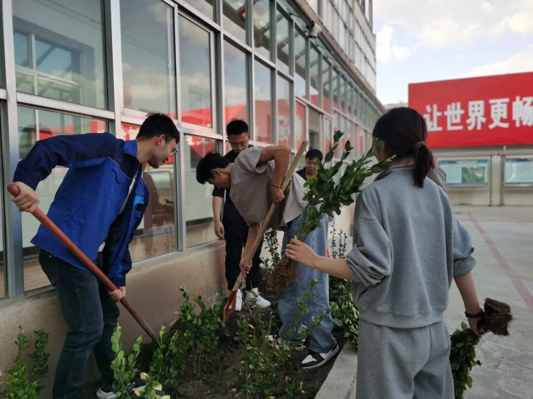 不久,职工生活群里就发布:“树苗到啦,大家吃完晚饭的来院子种树啦!”消息刚一发出,大家就纷纷来到栽种现场,井然有序地开始整地、划分区域、打点定位、挖树坑、分树苗等一系列操作,忙得不亦乐乎。