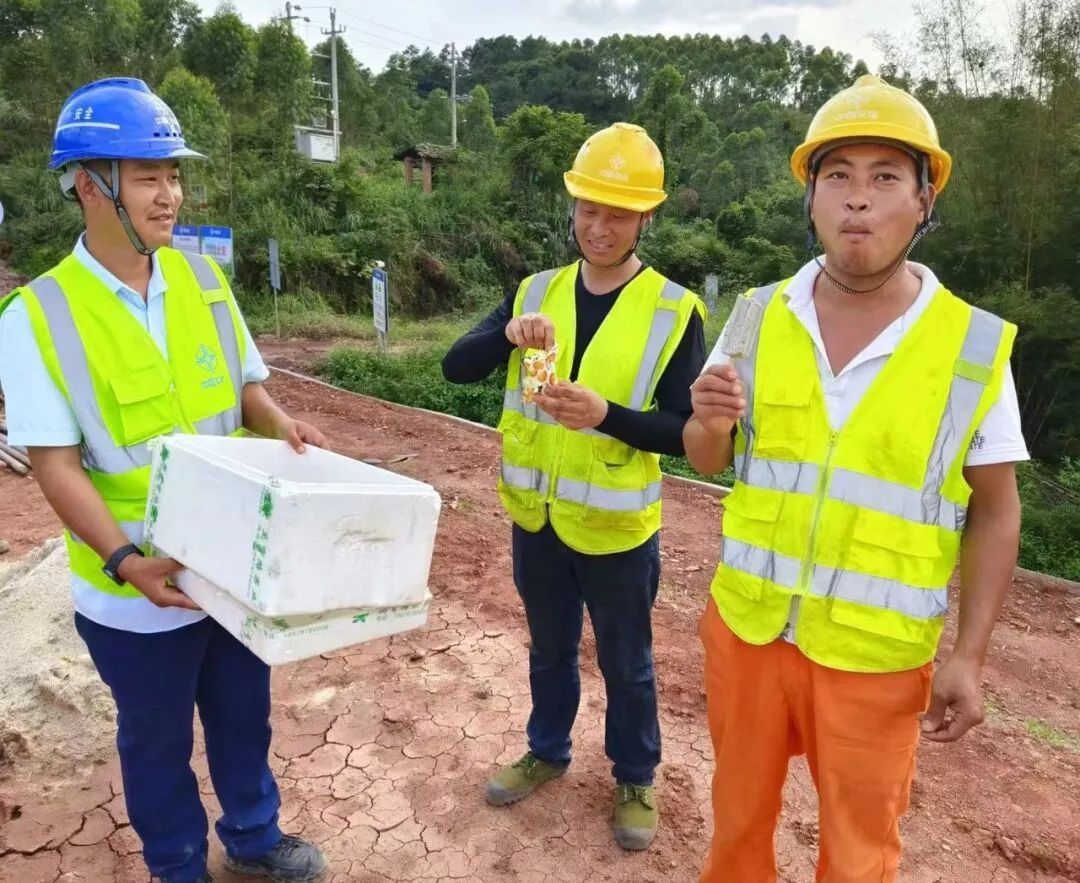 炎炎夏日送清凉,殷殷关怀寄深情。平容四标项目位于广西省贵港市平南县,受亚热带季风气候的影响,这里夏季时间长,气温炎热,加之雨量充沛,导致户外非常的闷热。为切实保障工人身体健康和作业安全,项目工会联合安全管理部组成“送清凉”服务队,将凉爽美味的雪糕送到每一位工人手中,并叮嘱工人预防中暑情况发生,确保自身健康。工人们撕开雪糕的包装咬了一大口,清凉在唇齿间化开,幸福的笑容在脸上洋溢。